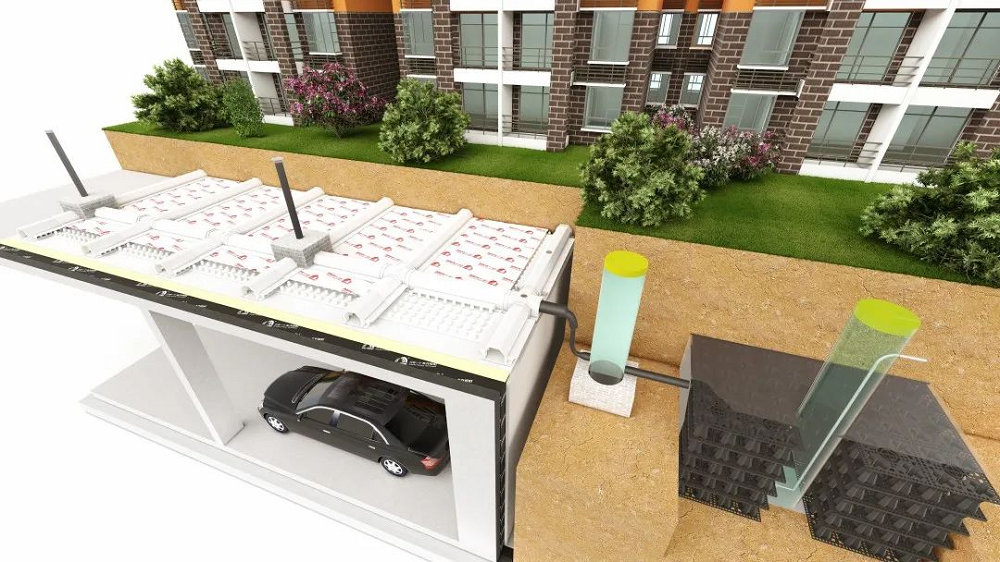 桃花源系統(tǒng)具有防水阻根、零度找坡、海綿理念等三大特點。不僅為建筑結(jié)構(gòu)提供持久可靠的柔性保護(hù),還能通過蓄水模塊將雨水收集再利用,滿足節(jié)水和水資源利用要求,符合綠色建筑和海綿城市建設(shè)要求。